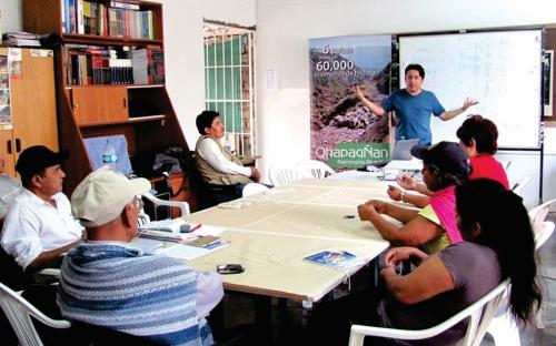 Durante la capacitación, dirigida a profesionales del Proyecto y a pobladores de las comunidades adyacentes al monumento arqueológico, se abordaron temas como la importancia y significado de la filogenia del quipu andino y se realizó un recorrido por los diversos estilos de manufactura destacando los quipus Huari, Inca y Moderno.