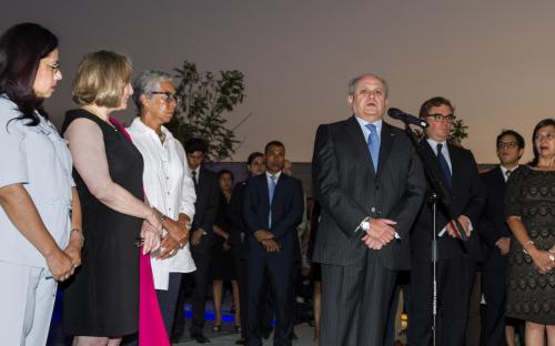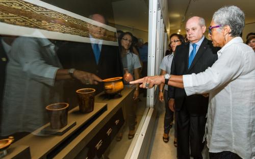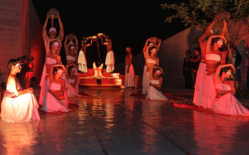 Los ministros Cateriano y Alvarez–Calderón en compañía de las ministras de la Mujer, Marcela Huita; de Relaciones Exteriores, Ana María Sánchez; y de Energía y Minas, Rosa María Ortiz, disfrutaron del espectáculo Tributo a Pachacamac -a cargo del Ballet Nacional, elenco oficial del Ministerio de Cultura, para posteriormente recorrer las instalaciones del nuevo museo.