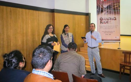 La conferencia, a cargo de Rodrio Ruiz Rubio del Qhapaq Ñan-Sede Nacional, se elaboró con el fin que los participantes puedan concebir, a partir de la descripción realizada, la magnitud y características del Camino Inca y su funcionamiento. Para ello se repartió material de difusión impreso en tinta, para personas con baja visión, y en sistema braille, preparado por personal técnico del Qhapaq Ñan – Sede Nacional en conjunto con los responsables y usuarios de la sala para invidentes de la Biblioteca Nacional del Perú. Igualmente, se proyectó un video con audio descripción sobre el Camino Inca, facilitando la accesibilidad de información acerca de nuestro patrimonio cultural.