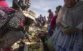 Luego de horas de caminata, los participantes fueron recibidos por las mujeres de los diversos sectores de la Comunidad Campesina de Chucasuyo Ccajje con una gran fiambrada tradicional con diversos productos que representaban la biodiversidad de la zona. Antes de proseguir con la caminata se presentó una zampoñada tradicional acompañada de la danza de Siko Moreno, el Carnaval de Tambillo y los Choquelas, esta última, según los comuneros, es una danza de origen pre-inca. Terminado este descanso, los participantes, peruanos y bolivianos, recobraron fuerzas mediante cánticos y arengas en lengua aimara para proseguir hasta el siguiente punto.