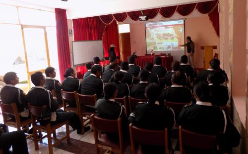 El objetivo de esta actividad fue informar al personal de la división sobre las características y trascendencia histórica del Sistema Vial Andino en la región Puno, que cuenta con nueve tramos de Camino Inca declarados Patrimonio Mundial por Unesco. Asimismo, se buscó el apoyo de la policía en la III Caminata Regional y I Caminata Binacional (Perú-Bolivia) por el Gran Qhapaq Ñan brindando seguridad y orientación a los participantes.
