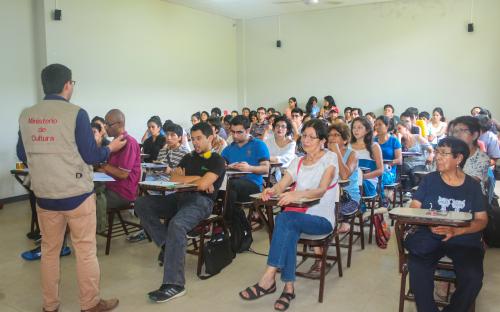 Con el objetivo de seguir brindando información sobre el Sistema Vial Andino en lenguas originarias, los miembros bilingües del equipo técnico del Área de Participación Comunitaria del Qhapaq Ñan – Sede Nacional del Ministerio de Cultura, realizaron un taller en lengua quechua en la Facultad de Letras y Ciencias Humanas de la Universidad Nacional Mayor de San Marcos, en coordinación con la Cátedra de Lengua Quechua de dicha Facultad.