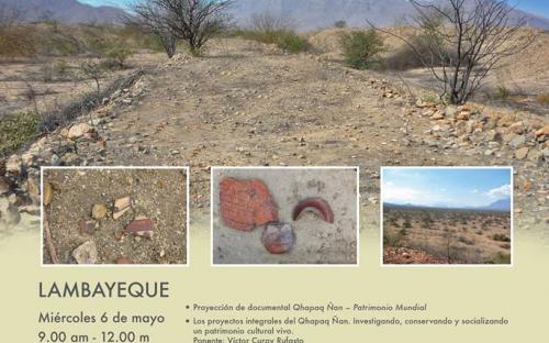 Con el apoyo del Proyecto Especial Naylamp – Lambayeque del Ministerio de Cultura y la Universidad Pedro Ruíz, el miércoles 6 de mayo se exhibirá el documental Qhapaq Ñan, patrimonio cultural, seguidamente de la charla Los proyectos integrales del Qhapaq Ñan: Investigando, conservando y socializando un patrimonio cultural vivo.