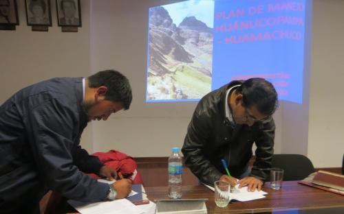 La lectura de la carta de UNESCO reconociendo al Qhapaq Ñan como Patrimonio Mundial marcó el inicio de la reunión, seguida de la ponencia del director del Proyecto Integral de Tramo Huánuco Pampa – Huamachuco, Ricardo Chirinos, quien presentó los Lineamientos del Plan de Manejo, Estudio de peligros naturales, Propuesta de Turismo Rural Comunitario y Avance de los Proyectos de Inversión Pública en el mencionado trayecto.