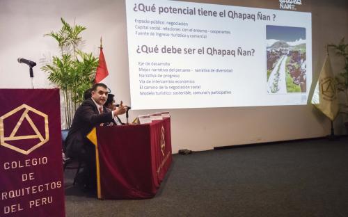Con el objetivo de seguir brindando información sobre la importancia de la red de caminos inca, el Ministerio de Cultura a través del Qhapaq Ñan – Sede Nacional en coordinación con el Colegio de Arquitectos del Perú - Región Lima, desarrollaron la conferencia “Vigencia del Qhapaq Ñan - Sistema Vial Andino” el viernes 16 de octubre en este colegio profesional.